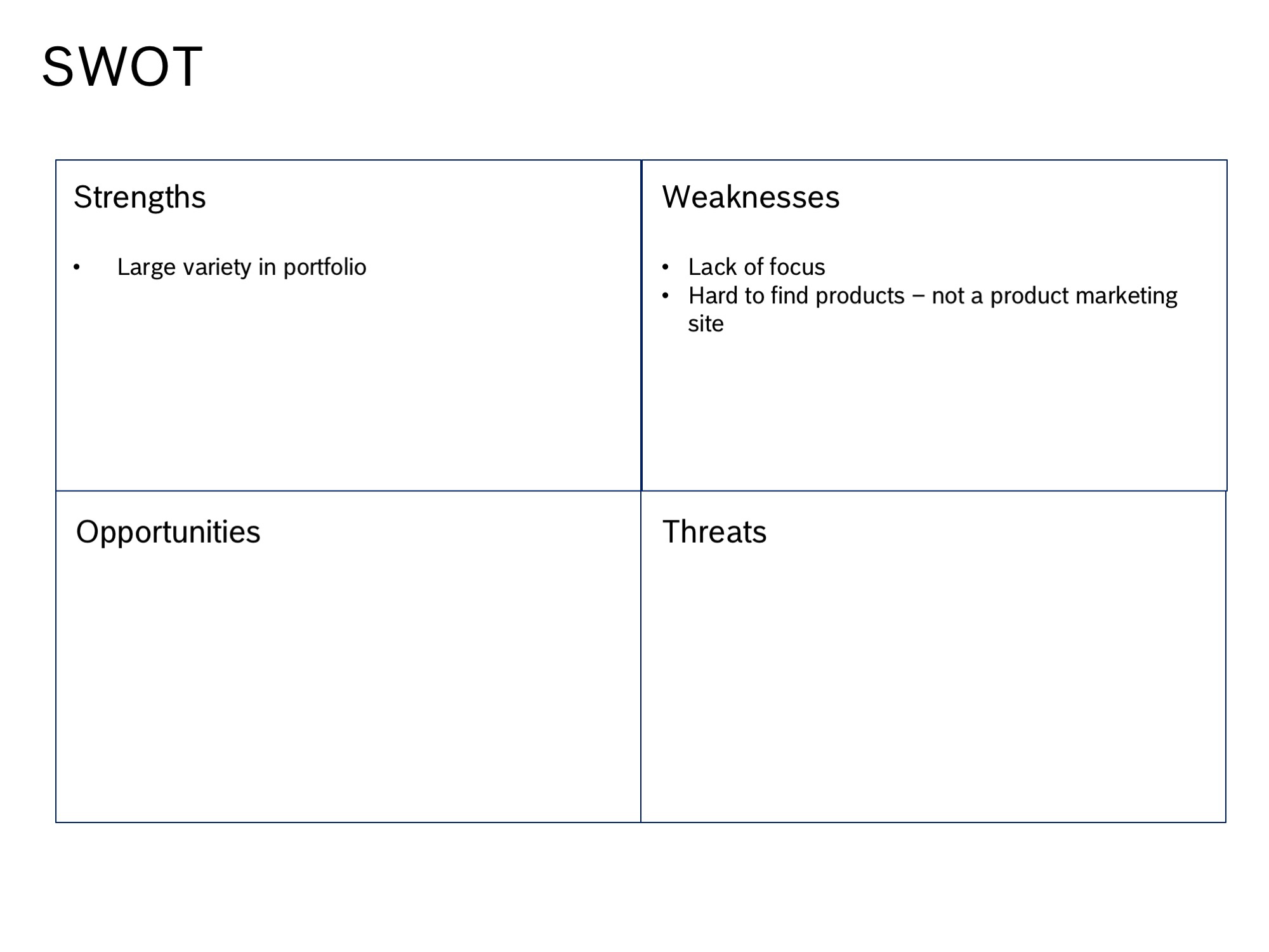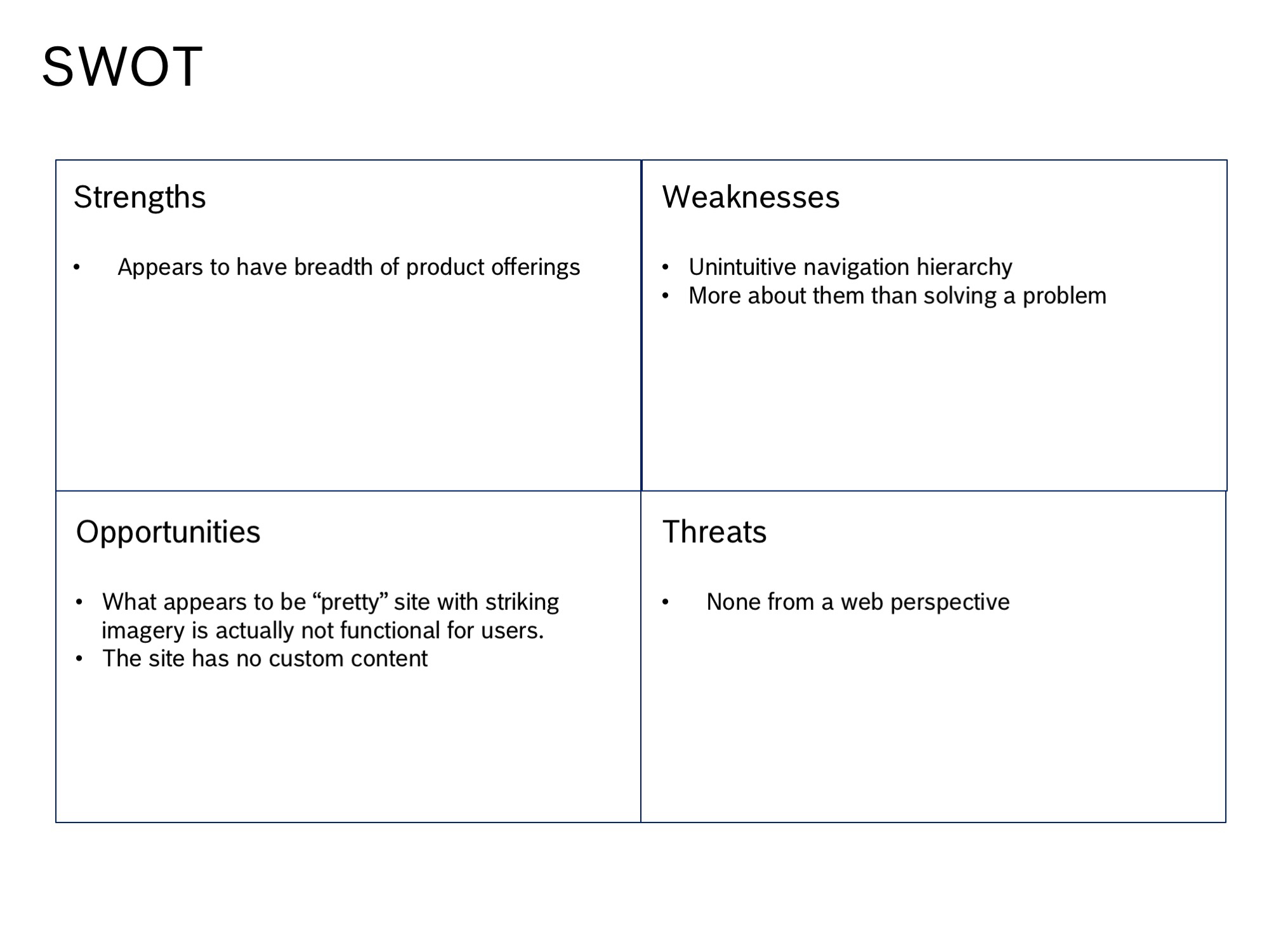 The project began by identifying key competitors, analyzing their product offerings, technology, storytelling, content strategy, Alexa ranking and general creative approach. In most cases, a SWOT analysis was also done.
