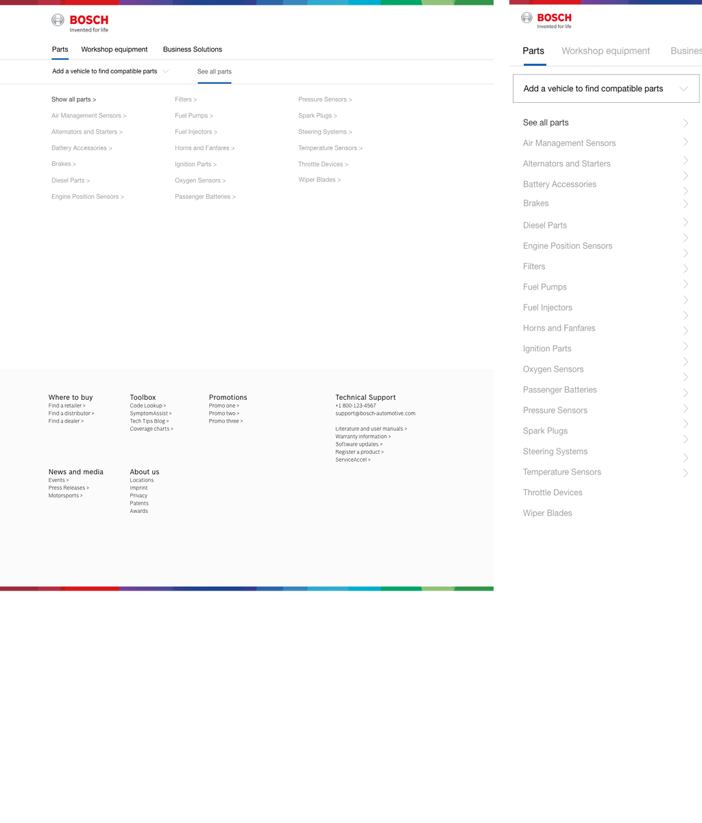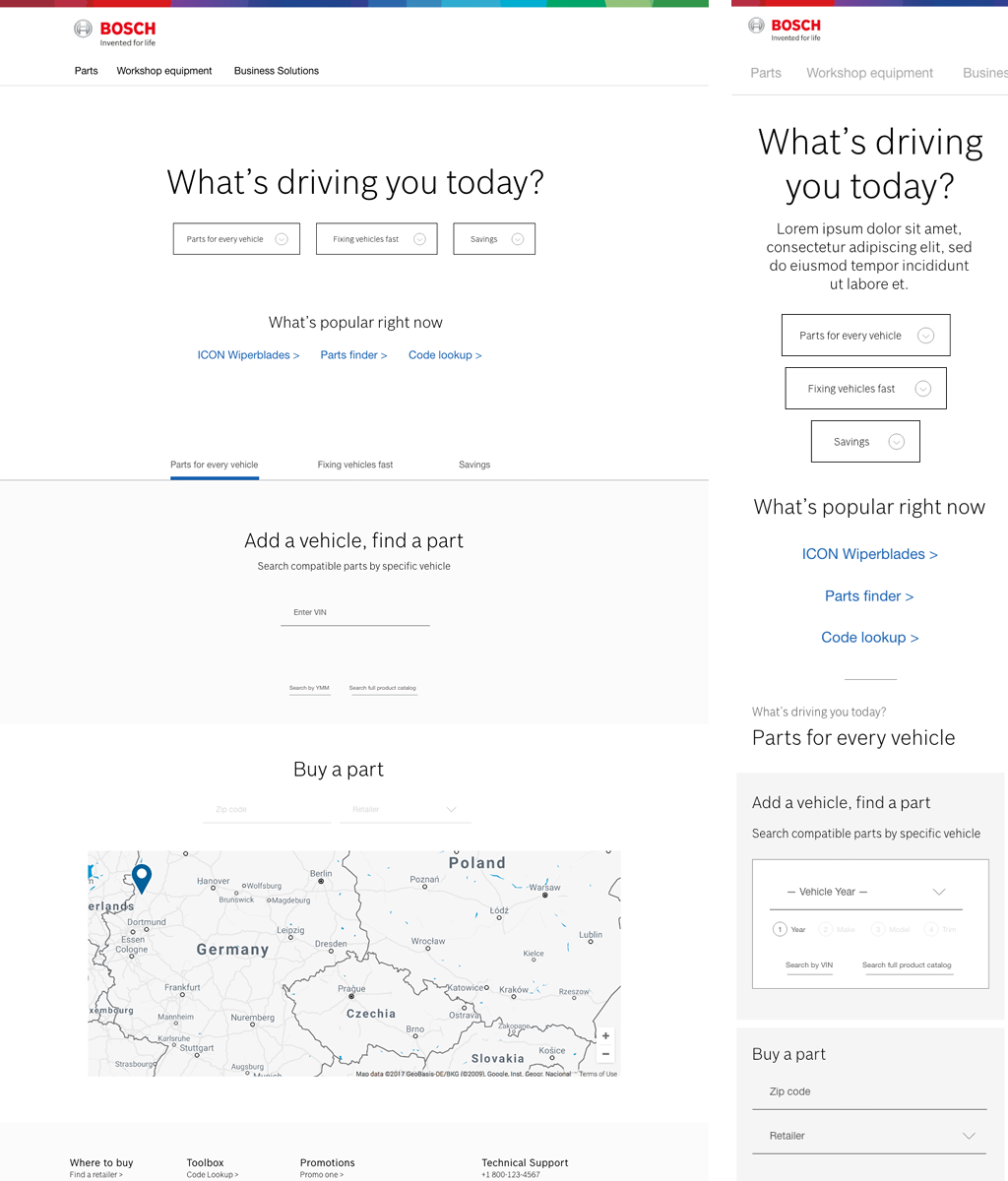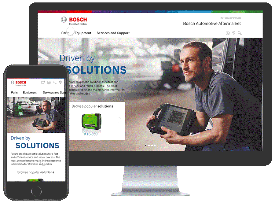 Consolidate ~60 regional Bosch Automotive websites into one global product. Implement the new digital corporate communications messaging strategy. Increase content quality and relevance, optimize information architecture and increase conversions.